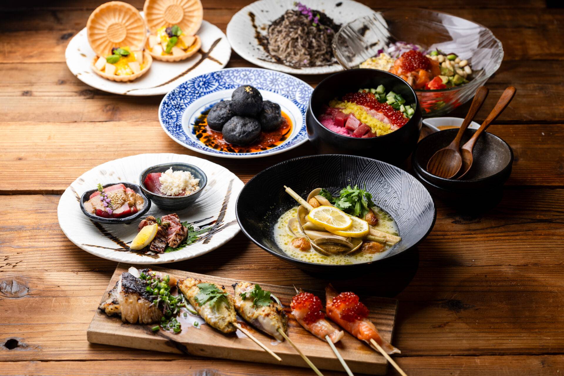 炭火で焼いた干物やマグロの刺身、焼き魚、肉料理なども存分にお楽しみいただけます。