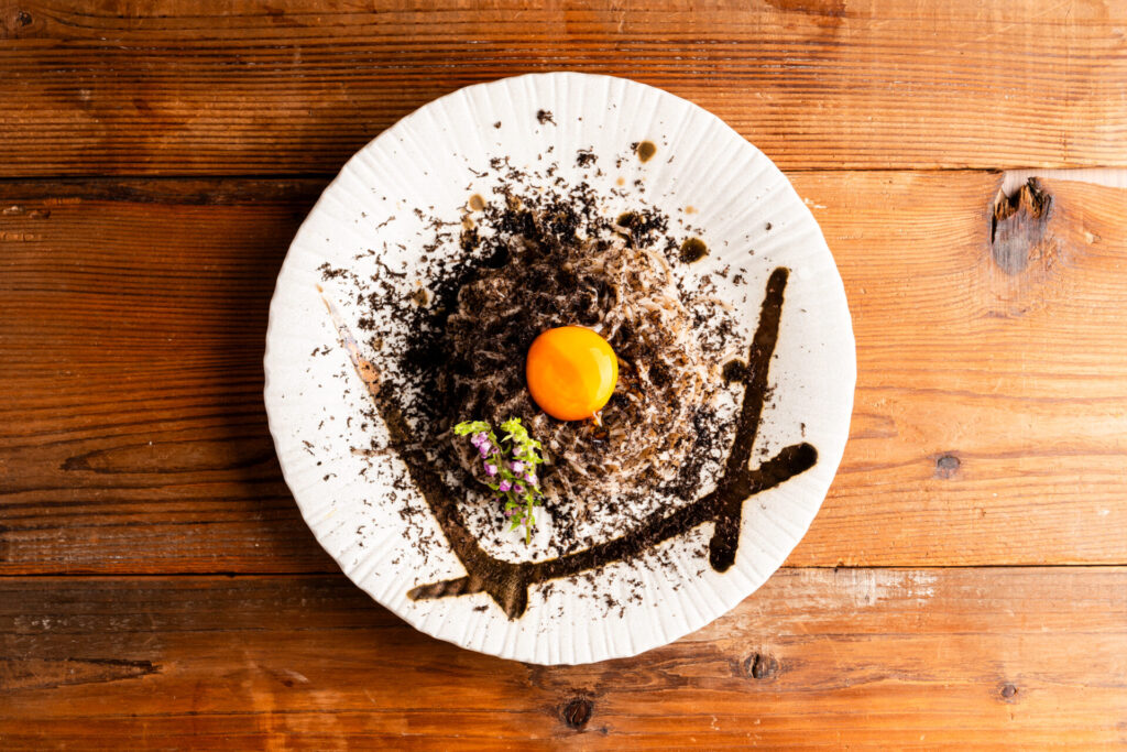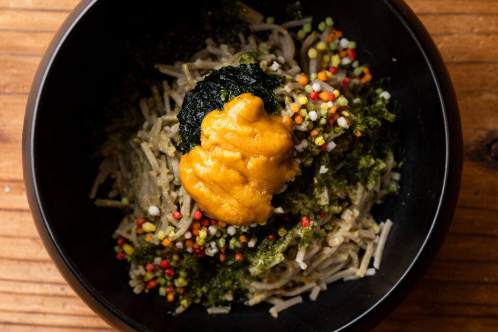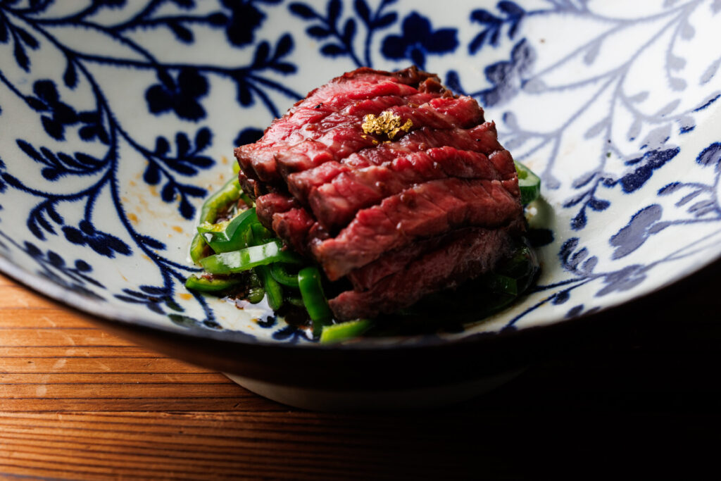 贅沢生ウニのせ本マグロ断面刺し直炭火焼きレアステーキ